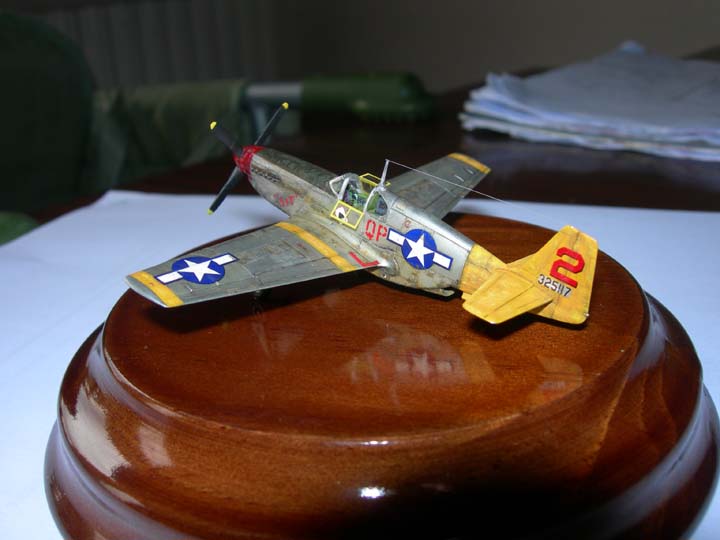 „Click photo for larger images.Manel Gallart from Barcelona (Spain) sent us photos of his P-51C Mustang. He furnished cockpit interior by himself and applied decals of an aircraft from 2nd FS, 52nd FG in Italy 1944 .